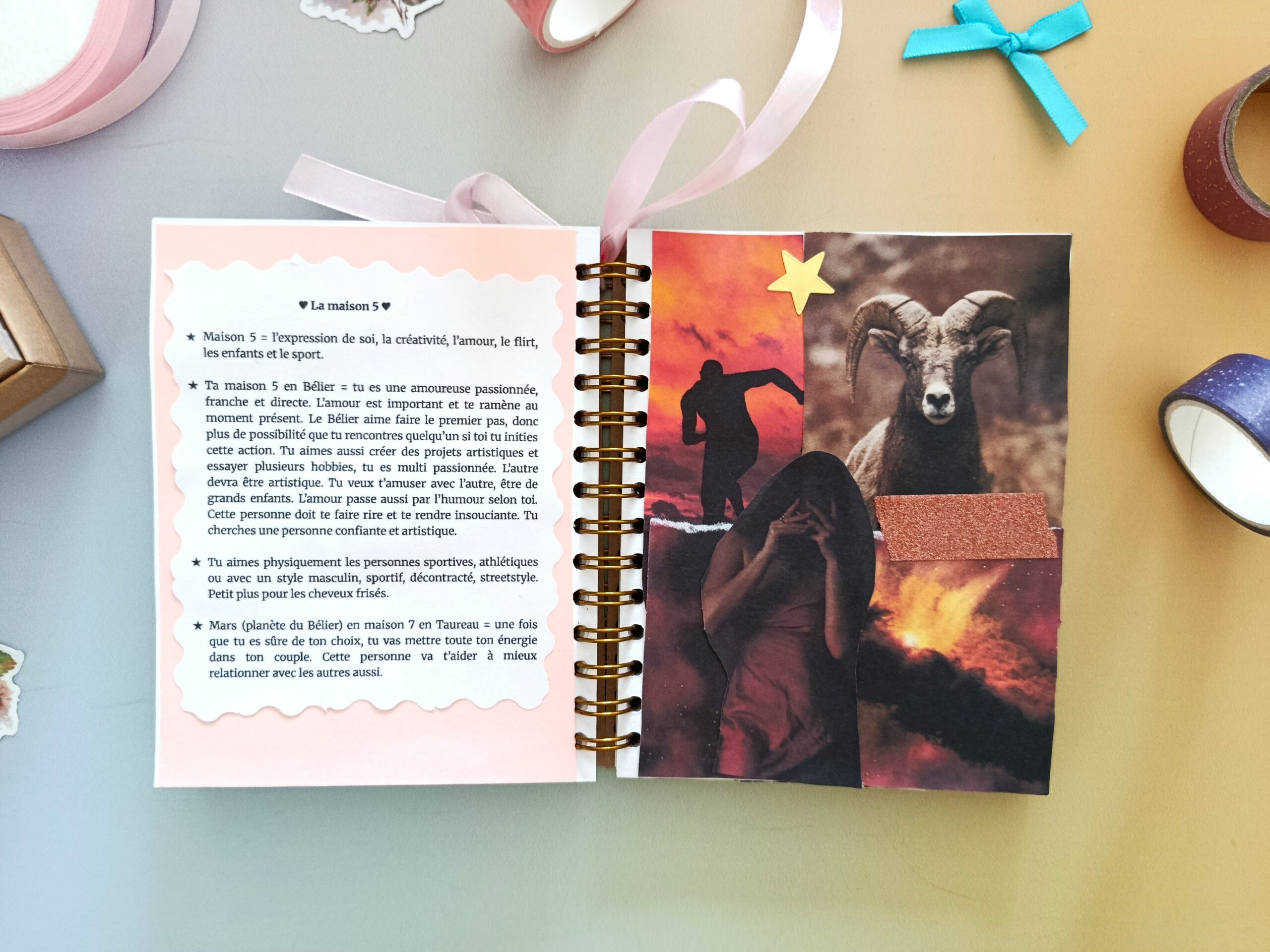 Les moodboards seront adaptés suivant le signe astrologique de la maison interprétée. Tu n’auras donc pas toujours les mêmes images que sur les photos suivant si tu as ta maison 5 en Taureau ou Lion par exemple.