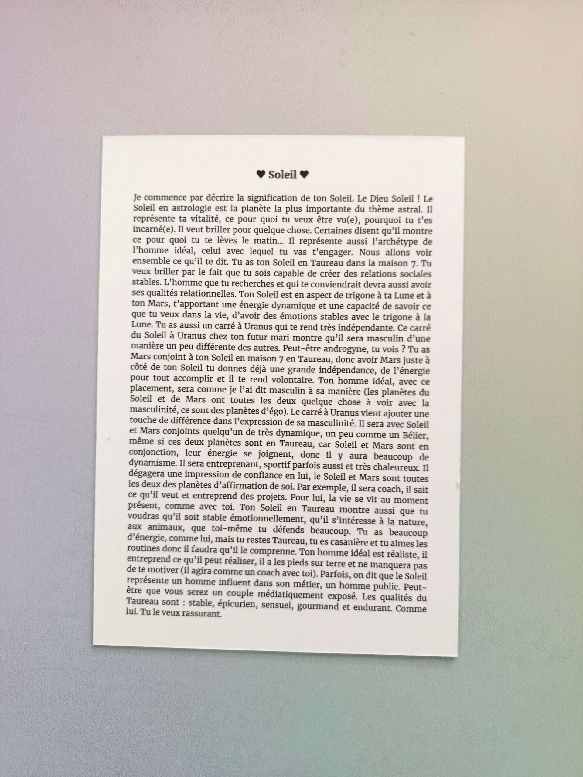 Contrairement aux interprétations générales qu’on trouve en ligne, ce lot de cartes est entièrement personnalisé à ton thème astral. Tu découvriras :