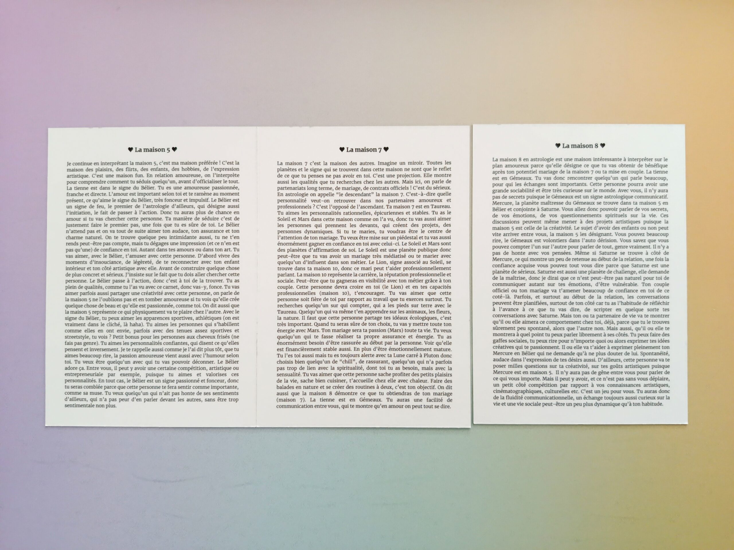 - Comment tu flirtes, ce que tu recherches en relation amoureuse officielle, ce que tu obtiens de ta relation (maison 5, maison 7, maison 8)